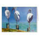 Drie ibis, die elk op één been staan, lijken op bescherming te staan terwijl ze het water scannen. Uit een oliefilter van South Florida Artist Betty Laur. www.bettylaur.com