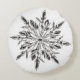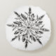 Mooie, kristallijne sneeuwvlok boven een witte achtergrond. Deze ronde kussens zouden je vakantie of winterdecor mooi aanraken.