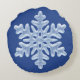 Icy Frozen Kerstsnowflake op Deep Blue Rond Kussen