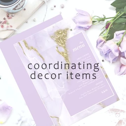 Ce design personnalisé avec une encre d'alcool abstraite dans les tons de lavande douce à violet lilas avec des accents dorés, est parfait pour un thème de mariage romantique et élégant. Le panneau mariage acrylique ci-dessous présente un texte unique "Cartes et Cadeaux" et fournit un modèle pour ajouter facilement vos initiales, la date du mariage et le message de remerciement. Recherchez ID990 pour voir d'autres pièces dans ce jeu de mariages coordonné.