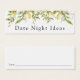 Demandez à vos invités de la douche nuptiale d'écrire leur idée de la nuit de date préférée sur cette carte simple de la nuit de date avec des branches de citron d'aquarelle et de la verdure.