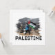 Het "Palestine"-ontwerp combineert een echt afbeelding dat de Palestijnse strijd uitdrukt met een krachtige visuele impact in een gescheurde stijl die veerkracht en verzet weerspiegelt. Het ontwerp is een visuele boodschap die kracht belichaamt.
