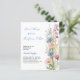 Een chique witte achtergrond. Versierd met een wilde bloemen in roze, blauw, geel. Personaliseer en voeg de naam van de bruid te zijn en partij details. Tekst: Iets blauw Voordat ik het doe. 1 vel = 1 uitnodiging bedrukt rand tot rand.