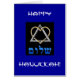 Gedurfd en uniek, dit originele ontwerp, door kunstenaar, Leslie Sigal Javorek, van een Ster van David gevormd met een gouden hart en zilveren driehoek maakt deze Hannukkah kaart niet gemakkelijk vergeten. tekst van binnen en van buiten.