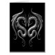 Twee zilveren stammendraken staan tegenover elkaar in dit agressieve symmetrische ontwerp. De gevleugelde serpenten zien eruit als gegoten uit massief ijzer dat een verbluffende 3D-blik creëer. De draken bevinden zich op een zuivere zwarte achtergrond en creëren een opvallend contrast. De metalen textuur en de diepe zilverkleur bieden deze kaart een stijlvolle vormgeving.
