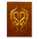 Twee gouden gele stamdraken staan tegenover elkaar in dit agressieve symmetrische ontwerp. De gevleugelde serpenten zien eruit als gegoten uit massief ijzer dat een verbluffende 3D-blik creëer. Een schaduw herfsten op de rijke bruine achtergrond die de draken maken schijnen net boven de oppervlakte van deze kaart te drijven.