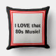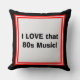 I Love That 80s Music is aan beide zijden geschreven in zwarte tekst tegen een lichtgrijze achtergrond. Rood, wit, lichtgrijs, zwart geometrisch ontwerp. Personaliseer met een naam. Origineel ontwerp © TamiraZDesigns.