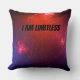 Een inspirerend citaat, "Ik ben grenzeloos" op een kosmische oranje, roze, blauwe achtergrond die sterrenstelsels in de ruimte weergeeft. Echt kosmisch en verhelderend voor meubilair en meubilair.