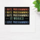 Fun design, ideaal voor iedereen die programmeur, technologiespecialist, coder, computeringenieur, IT-student of iemand die graag codeert! Ik haat programmeren. Het werkt! Ik hou van het grappige citaat van Programming voor programmeurs, technologiefhebbers, coders, en ontwikkelaars. Hou je van je werk in de technologie en deel je van de technicus? Benadruk je stijl met deze coole kunst! Geweldig geschenk voor een IT-student, technicus, technicus of computertechnicus.