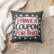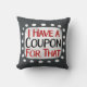 "I Have A Coupon For That" is een schattig tekstontwerp in grijs met zwarte en rode tekst, samen met een witte accentvorm en witte gestructureerde grillige stippen eromheen.