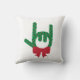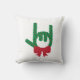 Kerstkrans in de vorm van een "I Love You" hand met een rode boog aan de onderkant tegen een witte achtergrond.