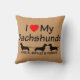 Dit aangepaste "I Love My Three Dachshunds" kussen is perfect voor iedereen die drie Dachshunds bezit, voeg gewoon je eigen hondennamen toe.