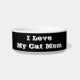 Huisdierkom voedsel- en watercontainer met zwarte achtergrondkleur en witte letterkleur bedrukt met aanpasbare sjabloontekst I love My Cat Mom op hoeden, shirts en huisdierproducten door TheFabricSeal print on demand winkel op Zazzle.com #ZazzleMade https://www.zazzle.com/store/thefabricseal