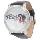 Deze Mannen Mooie lederen bandhorloge met de woorden, I LOVE SALSA, en sommige Instruments gebruiken om feesten, CONGA's en MARACAS te maken.