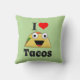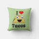 Verklaar je liefde voor taco's met deze leuke kussen! De kleur en de doopvont van de tekst evenals de achtergrondkleur van de kussen kunnen worden veranderd om uw voorkeur te passen. Tacos — yum!!