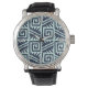 Ikat Aztec Pattern - Indigo and Light Blue Horloge