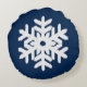 Ikat Snowflake - White en Dark Navy Blue Rond Kussen