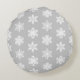 Ikat Snowflakes - Zilver grijs en wit Rond Kussen