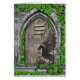 Une porte Dragon de fée détaillée à un château avec lierre et une plaque appropriée avertissant de tout héros potentiel. Il y a une silhouette du Château de Tintagel (Cornwall) sur la partie inférieure ainsi que des charnières ornées de porte du château.