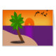 ÎLE TROPICALE AVEC PALMIER, COUCHER DE SOLEIL ET OISEAUX