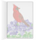 Een wenskaart versierd met een felrode kardinaalvogel in een stuk levendige paarse houten viooltjes getekend met inkt en beschilderd met waterverf. Geïnspireerd door de staatsvogel en staatsbloem van Illinois. U kunt de tekst bewerken of verwijderen om aan uw behoeften te voldoen.