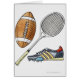 AssetID : 103311372 / {Dorling Kindersley} / Illustration de la balle de rugby, de la raquette de tennis, de la botte de football