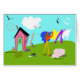 Art numérique original mignon et coloré par V.B. Blake. C'est une scène familière sur la Côte Est du Canada où la blanchisserie fraîchement lavée est dessus sur une ligne à sécher dans une brise douce. Dans cette scène le petit chien aide tandis que le minou aventureux considère le courrier de blanchisserie.