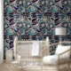 Imaginaire Galaxy Décor murale non transparente Design Fond d'écran peint généré Conçu pour des applications de petite surface d'accentuation d'une feuille, les coutures ne correspondent pas. étoiles d'Imaginaire et ciel nocturne dans les bleus et les couleurs violettes.