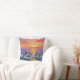 An ai impasto style dolphins swimming with a pink, orange and purple sunset over the ocean . A beautiful coastal throw pillow for your beach home or beachy styled home.