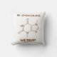 Chocolade chemische houding is levend en goed op dit gooi kussen met de theobromine molecule, het actieve ingrediënt in chocolade, samen met het gezegde dat alle chocoladeliefhebbers zullen kennen en genieten: "In Chocolate We Trust". memorabele biochemie geek humor gooi kussen voor elke chocolade fan!