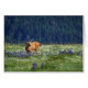 Een foto van een met zwarte staart besmeurde deer in een weide van paarse luiers en andere wilde bloemen. Een stijgende berg op de achtergrond is bedekt met pijnbomen. Copyright ©2017 Kimberly J Tilley.