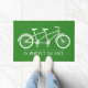 Mooie groene deurmat bedrukt met een witte tandem fiets en de woorden In Perfect Balance.