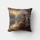 Indiaanse vrouw zit aan het water met wolf kussen