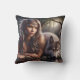 Indiaanse vrouw zit 's nachts bij wolf kussen