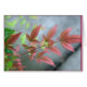 Herfst of Holiday groetings - kalender bladeren die rood worden, geaccentueerd met dewdruppels op een vrolijke ochtend.