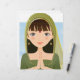 Mooie Indiase vrouw in een groene sari, die haar handen bij elkaar houdt