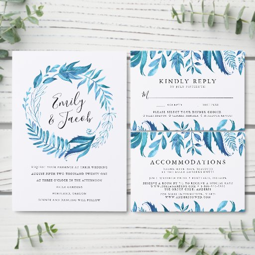Indigo bladeren | Krans bruiloft uitnodiging