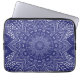 Indigo blauwe mandala laptophoes met een kant look design met florale elementen en harten.