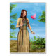 3D digitale render van een mooie indiaanse vrouw met een roze vogel in een groen bos