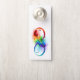 Kunstmatig getekend ineiniteitssymbool met prachtige regenboogveren op witte achtergrond. Tattoo stijl.