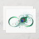 Het symbool van oneindig met een heldere, groene, artistieke pauw-veer op een witte achtergrond. Tattoo stijl.