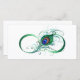 Het symbool van oneindig met een heldere, groene, artistieke pauw-veer op een witte achtergrond. Tattoo stijl.