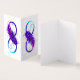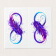 Infinity symbole with a beautiful feather painted in purple and blue bright colors on white background