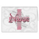 Texte tourbillonnant rose d'infirmière, avec une croix rose et des remous de blanc et de gris à l'arrière-plan. Un beau cadeau pour la nouveau infirmière, étudiant d'école d'infirmières ou professionnel avec des soins ou une carrière médicale à un hôpital ou au bureau du docteur. Très assez et conception féminine. Tout conçoit le © de Copyright www.CuteComfy.com 2012