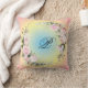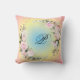 Voeg gepersonaliseerde flair toe aan uw woonkamer bank of gastenbeddengoed met dit mooie kussen, met een monogram print binnen een bloemenkrans rand, op abstracte radiale helling roze geel en blauw zacht kleurrijke achtergrond. Dit monogram floral kussen zal zeker wat aandacht trekken. Personaliseer met uw initiaal, monogram meer naam, lettertypestijl, lettergrootte en letterkleur door te klikken op "Pas het aan". Maakt een zoet huis verwarmend cadeau en een geweldig verjaardagscadeau, ook!
