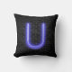 Initiaal U in een gloeiend markttent met paarse neonverlichting op de muur van de stadskersteen. Neem contact met me op voor wijziging van de initiaal brief.