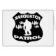 La grande police noire badge l'emblème avec, la "patrouille de Sasquatch," écrit dans la police blanche simple avec une silhouette blanche de Sasquatch au centre et à un arrière-plan blanc de pin.