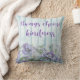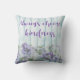 Gooi de kussen met een blauw en paars palet en een bloemenvormig ontwerp warm. ALTIJD WORDT DE KINDNESS VAN DE KEUZE geschreven op de faux houten hek in decoratief manuscriptschrijven. Ideaal voor een bed, stoel of bank - en als regel om te leven door