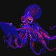 Internetverslaving. Dit levendige, futuristische afbeelding combineert marine intelligence met een moderne schermobsessie. Terwijl de octopus zich vastklampt aan zijn apparaat, weerspiegelen de gloeiende kleuren de frustratie en het magnetisme van eindeloze digitale consumptie, waardoor dit een amusante kritiek is op technische afhankelijkheid. Misschien zijn er geen grenzen voor een wezen met negen hersenen en drie harten!