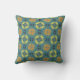 Intricate floral and geometric pattern with orange flowers and yellow circles on a teal background. The design is symmetrical and vibrant.